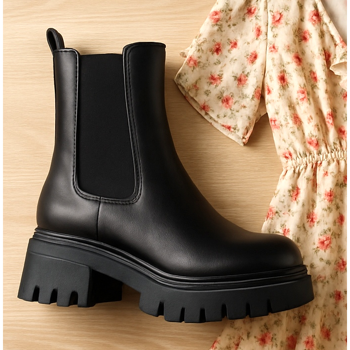 Botas gruesas: ¿cómo llevar botines enormes con vestidos sueltos?