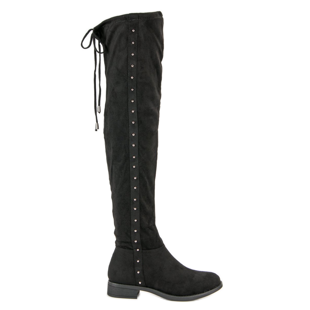 Detalles: SDS Botas hasta el muslo con pedrería negro