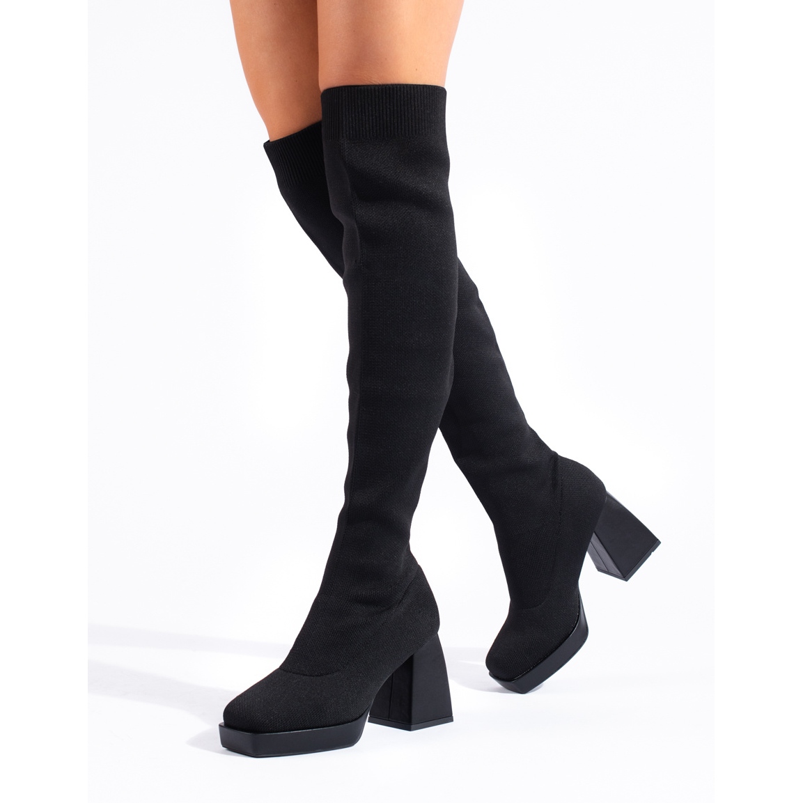 Detalles: Botas hasta el muslo para mujer Shelovet con parte superior flexible negro