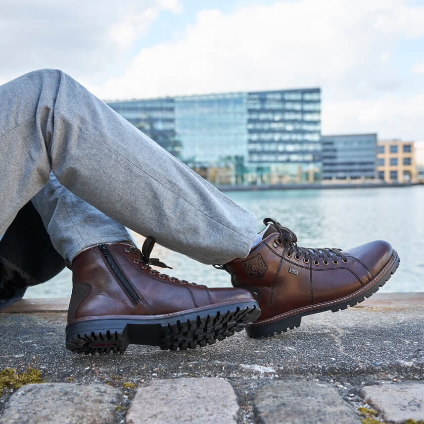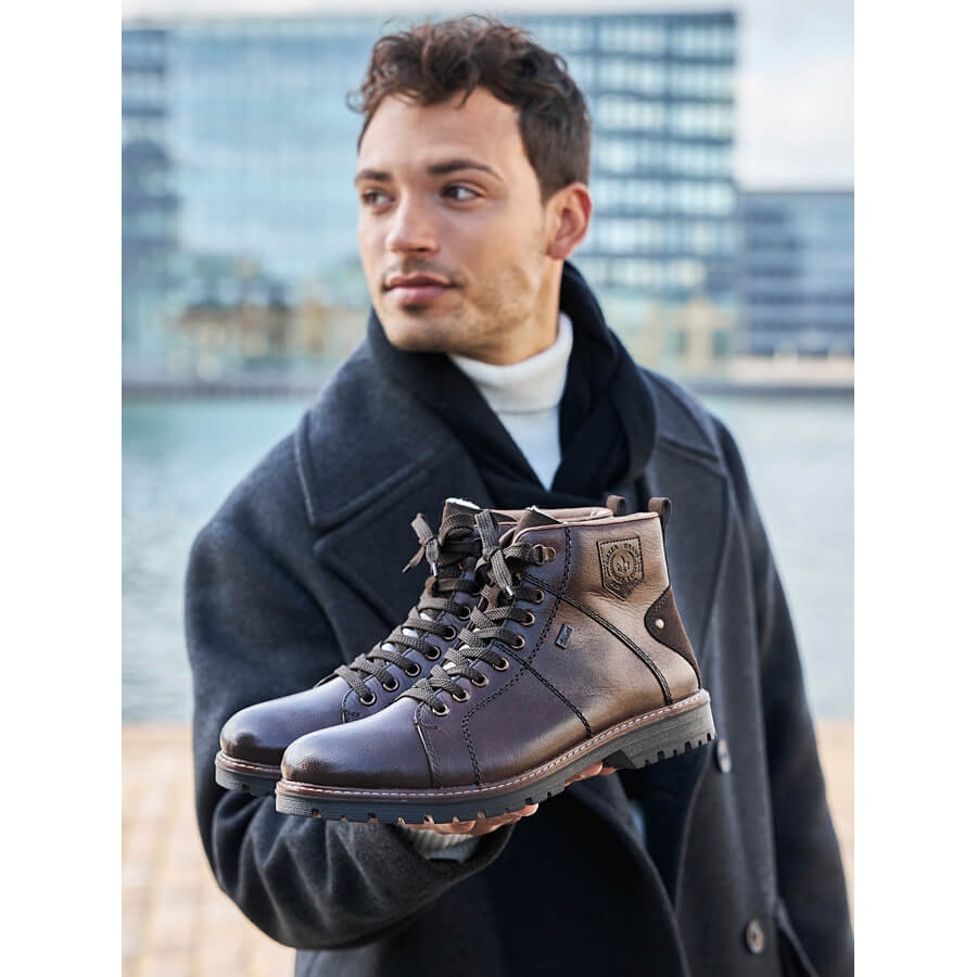 Botas de invierno impermeables para hombre con aislamiento de lana de oveja, Rieker F3602-25 marrón, es un producto único que es una combinación perfecta de funcionalidad y estilo. La marca Rieker es reconocida desde hace años gracias a su calzado de alta calidad que combina tecnologías modernas y comodidad de uso. El modelo presentado se adapta perfectamente a las necesidades de los hombres que buscan zapatos de trekking que funcionen bien en condiciones invernales.