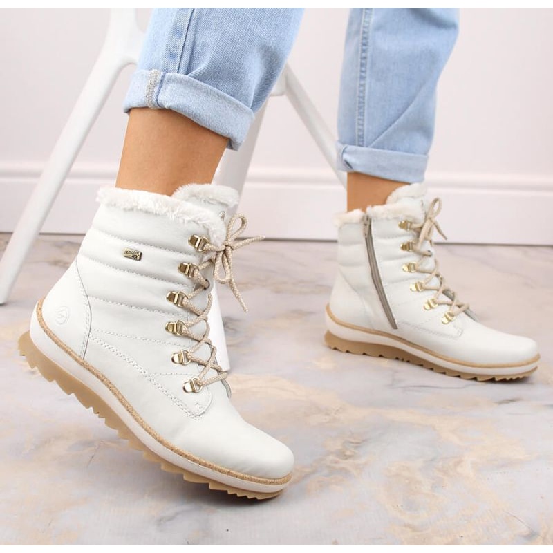 Detalles: Rieker Botas impermeables de piel con aislamiento de lana Remonte W RKR629 blanco