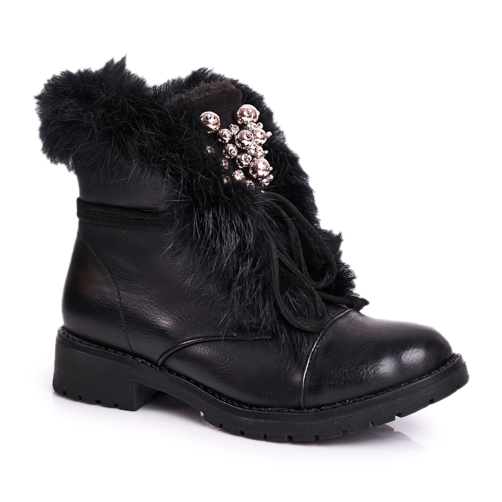 Los botines MSMG fueron diseñados pensando en la comodidad. Gracias a la cremallera cosida en el lateral, ponerse y quitarse los zapatos es rápido y sencillo. El interior del zapato está aislado con pelo suave, lo que garantiza calidez y comodidad incluso en los días más fríos. Además, las elegantes decoraciones en forma de perlas de metal y pelo les dan un carácter único que seguramente será apreciado por cada pequeña amante de la moda.