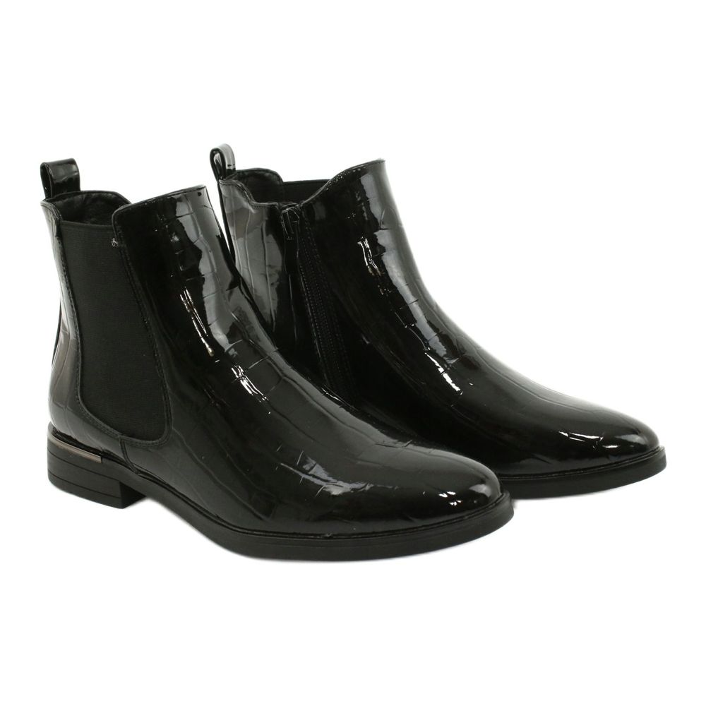 Los botines Chelsea con cremallera Filippo DBT1568/20 BK son la elección perfecta para las mujeres que quieren combinar comodidad con elegancia. Estas botas de charol negro llaman la atención no sólo por su diseño moderno, sino también por su alta calidad de fabricación. Confeccionados en piel ecológica, presentan un estampado animal de moda que les aporta carácter.