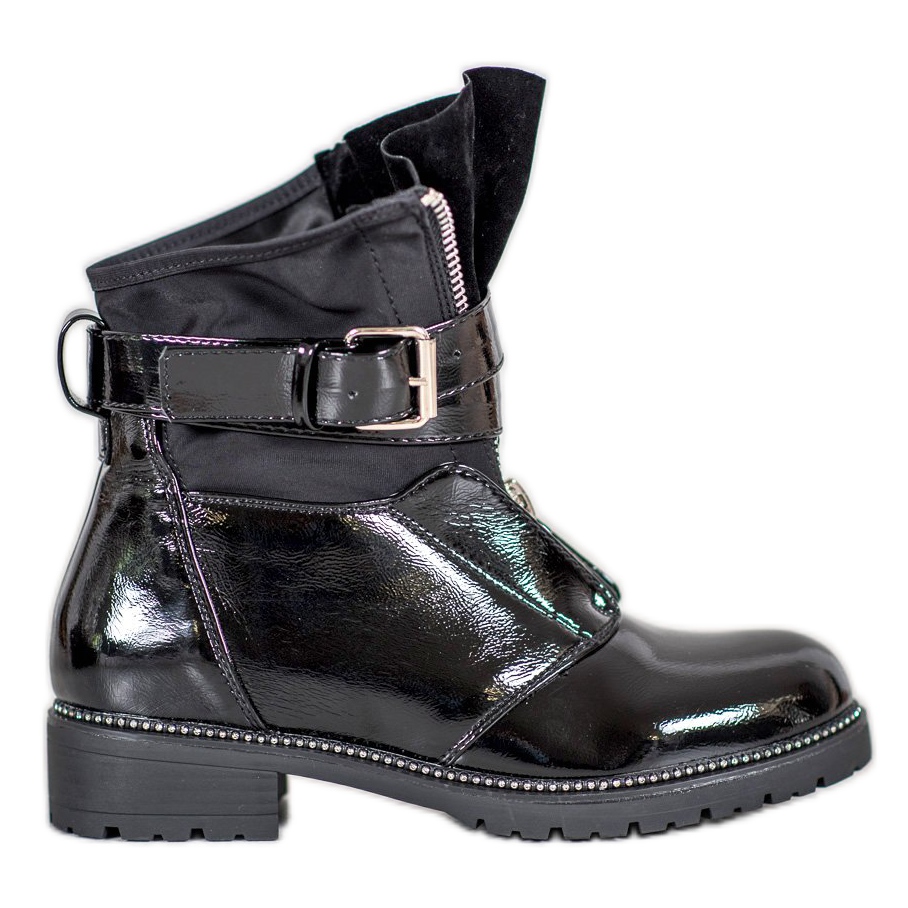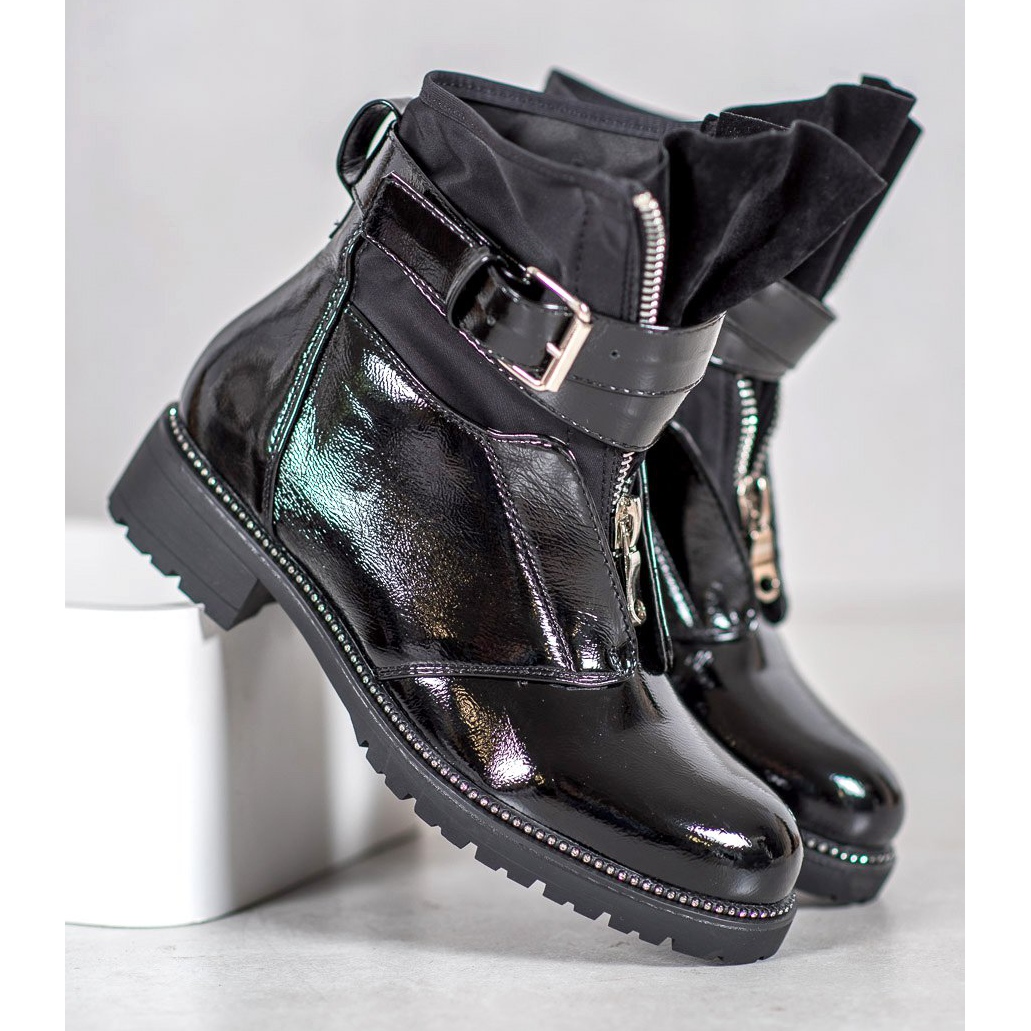 Déjate sorprender por la elegancia y singularidad de las botas de charol negro del fabricante Seastar. Estos elegantes zapatos de mujer, que llegan hasta el tobillo, son la elección perfecta para las mujeres que quieren combinar moda con comodidad. Su parte superior inusual y una llamativa cremallera en lugar de los tradicionales cordones les dan un aspecto excepcionalmente intrigante.
