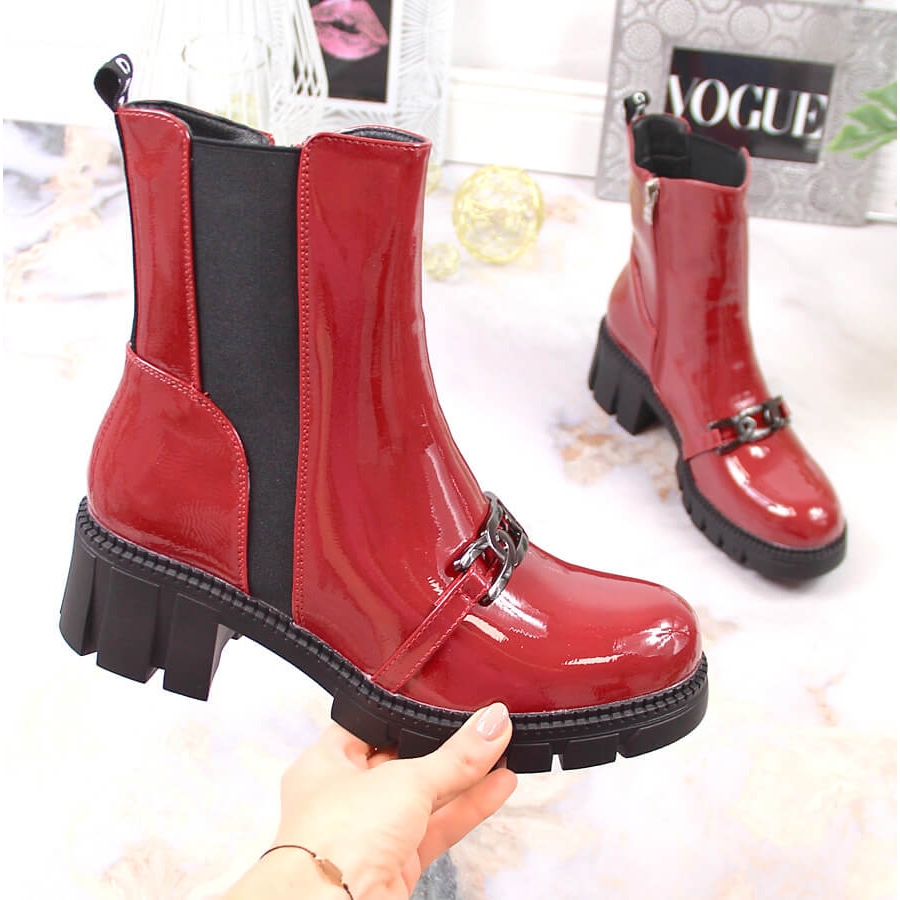 Es el calzado perfecto para toda mujer que busca una combinación de comodidad, estilo y un look original en su armario otoño-invierno. Los botines Potocki de charol rojo con bloque y plataforma con cadena son una elección que enfatizará no solo la personalidad, sino también el sentido de la moda de cada mujer.