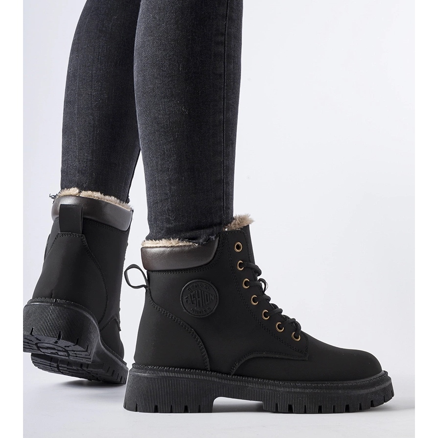 Los trampas Medole elegantes y atemporales son la combinación perfecta de diseño urbano y soluciones prácticas para los meses fríos. Alto, alcanzando el tobillo, hecho de cuero ecológico, con un pelaje suave en el interior, proporciona calor y comodidad durante todo el día. Una suela de goma sólida garantiza una buena adhesión en la nieve y las superficies heladas, y el cordón le permite colocar el zapato al pie. Una nariz redonda le da libertad a los dedos, por lo que puede caminar durante horas sin sentirse cansado.