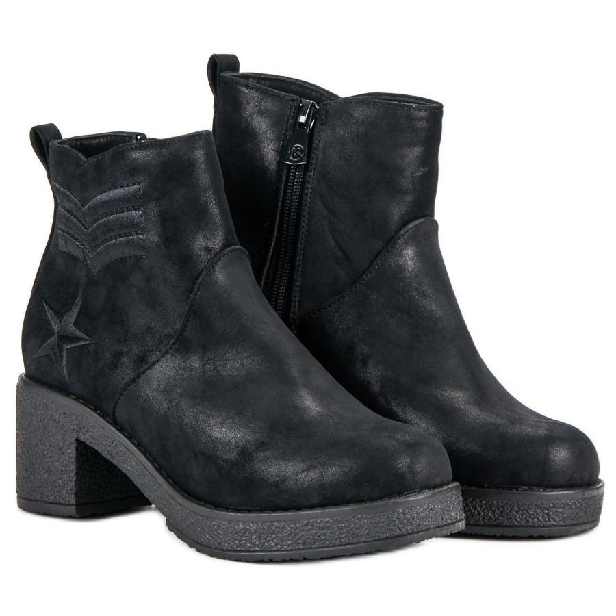 Un acento distintivo en forma de estrella militar bordada les da un carácter único que llama la atención. El tacón de bloque de 6 cm, junto con una plataforma estable, proporciona un soporte adecuado, lo que significa que puedes usar estas botas todo el día sin sacrificar la elegancia.