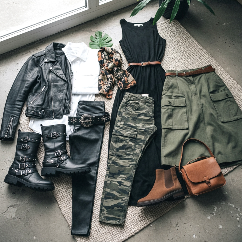 Las botas moteras son la elección perfecta para un look más rockero y atrevido, pero también se pueden usar en estilos sofisticados. Llévalos con leggings negros, una chaqueta de cuero y una camisa blanca clásica: es un look motero clásico. También se pueden usar con vestidos: un vestido largo largo con un top negro y un cinturón de cuero crea un contraste interesante. Las botas Chelsea son más universales: llévalas con pantalones de camuflaje, vaqueros negros o faldas militares. Las botas Chelsea también se pueden usar con estilos más formales o vintage. La clave es entender que las botas biker son más rockeras, mientras que las botas Chelsea pueden ser más militares o vintage.