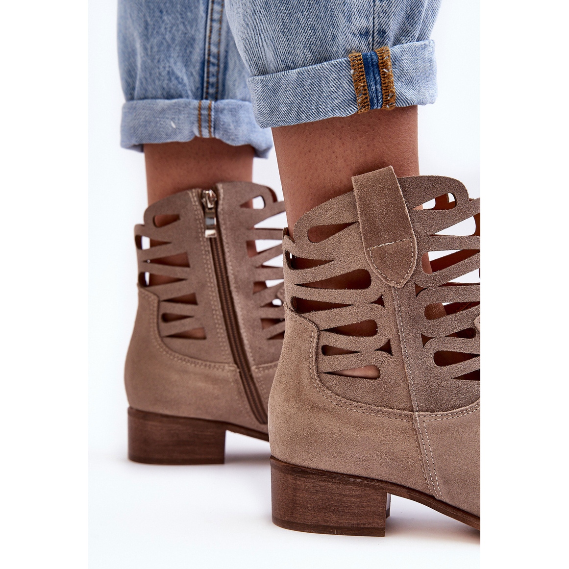 Estos elegantes botines de mujer calados de Lewski Shoes están hechos de cuero natural de alta calidad, lo que garantiza comodidad de uso. Su color beige oscuro (nombre del fabricante: CAPPUCCINO/VELUR) los hace muy elegantes y universales: combinan con muchos estilos diferentes. Se cierran en el lateral con cremallera, lo que hace que sean fáciles de poner y quitar rápidamente.