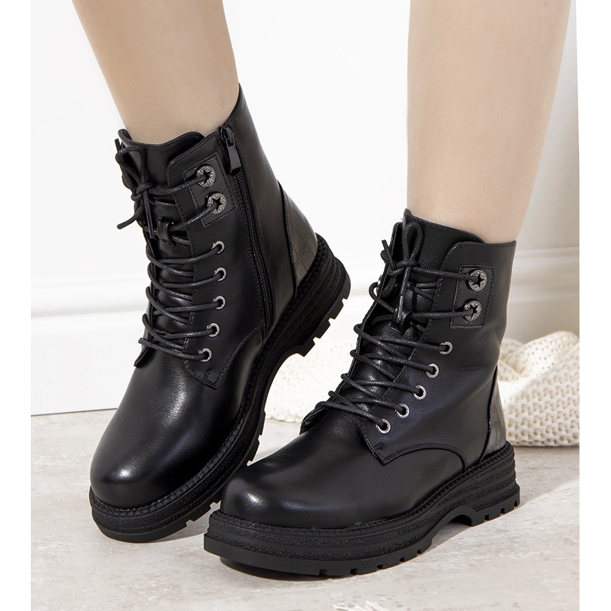 ¡Las botas Dora son el éxito de esta temporada! La suela gruesa se ve increíble. La parte superior está realizada en piel ecológica con inserciones con textura de piel de cocodrilo. El modelo está aislado con pelo grueso que nos proporcionará comodidad en los días de invierno. Numeración estándar, siga su tamaño.