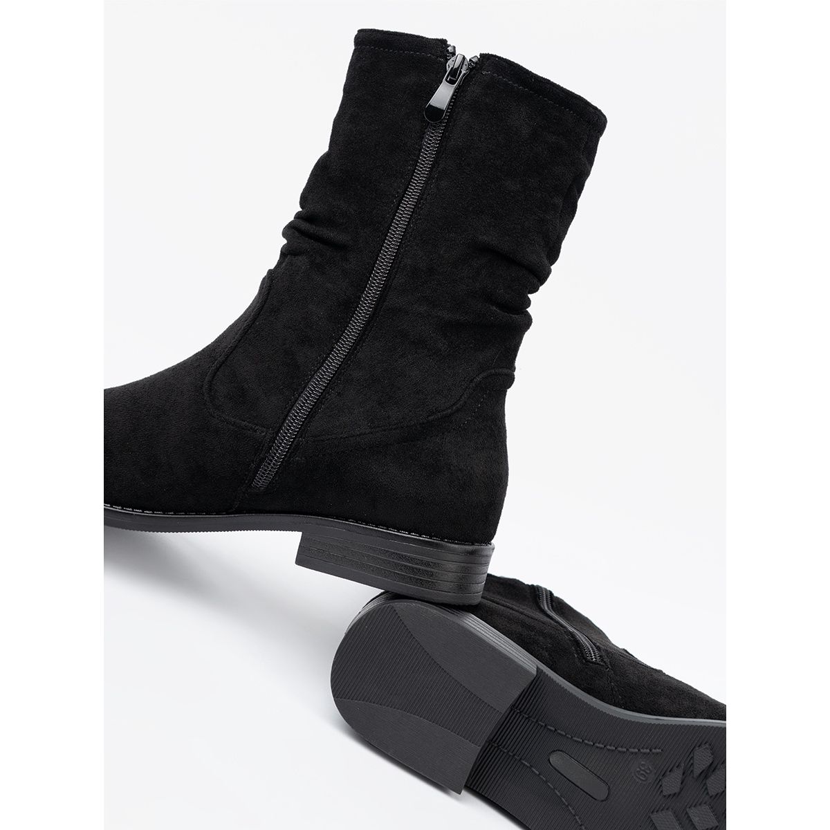 Hecho de gamuza de imitación de alta calidad, las botas ofrecen no solo una apariencia estética, sino también la comodidad de usar gracias al interior textil, lo que garantiza la circulación de aire adecuada. Una nariz redonda y un talón plano con una altura de 3 cm los hacen ideales para usar todo el día, sin sentirse cansado.