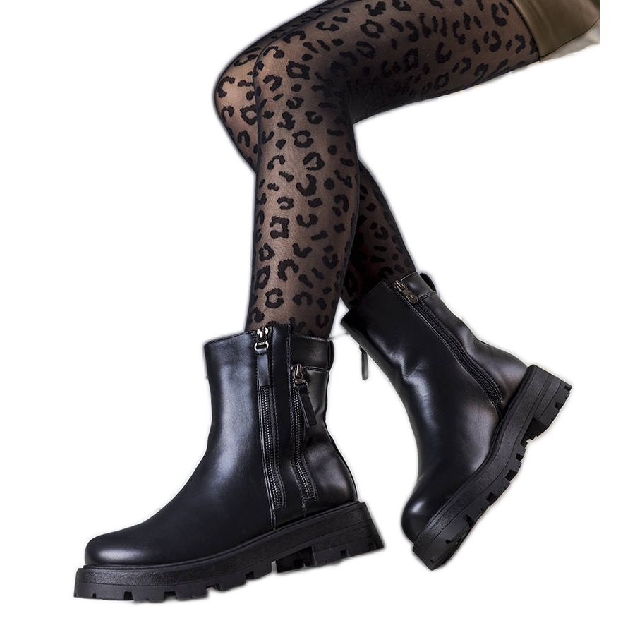 Botas aisladas de ferry negro: elegante, cálido y práctico. El modelo que se ajusta a las tendencias más populares de la temporada de otoño/invierno: la suela masiva, duradera y el cuero ecológico negro y atemporal crean un look tanto de moda como resistente al mal tiempo. El interior está forrado con piel suave, que proporciona comodidad y calentamiento agradable en los días más fríos.