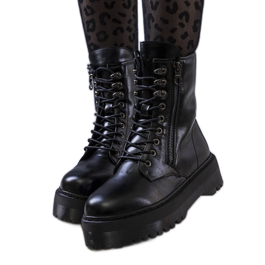 Los cazadores negros de Isola son imprescindibles la temporada de otoño/invierno. Hecho de cuero ecológico, con un interior aislado terminado con piel suave, proporcionará calor y comodidad incluso a temperaturas más bajas. La plataforma característica y alta traper agrega una expresión de moda y estabilidad de cualquier estilización.