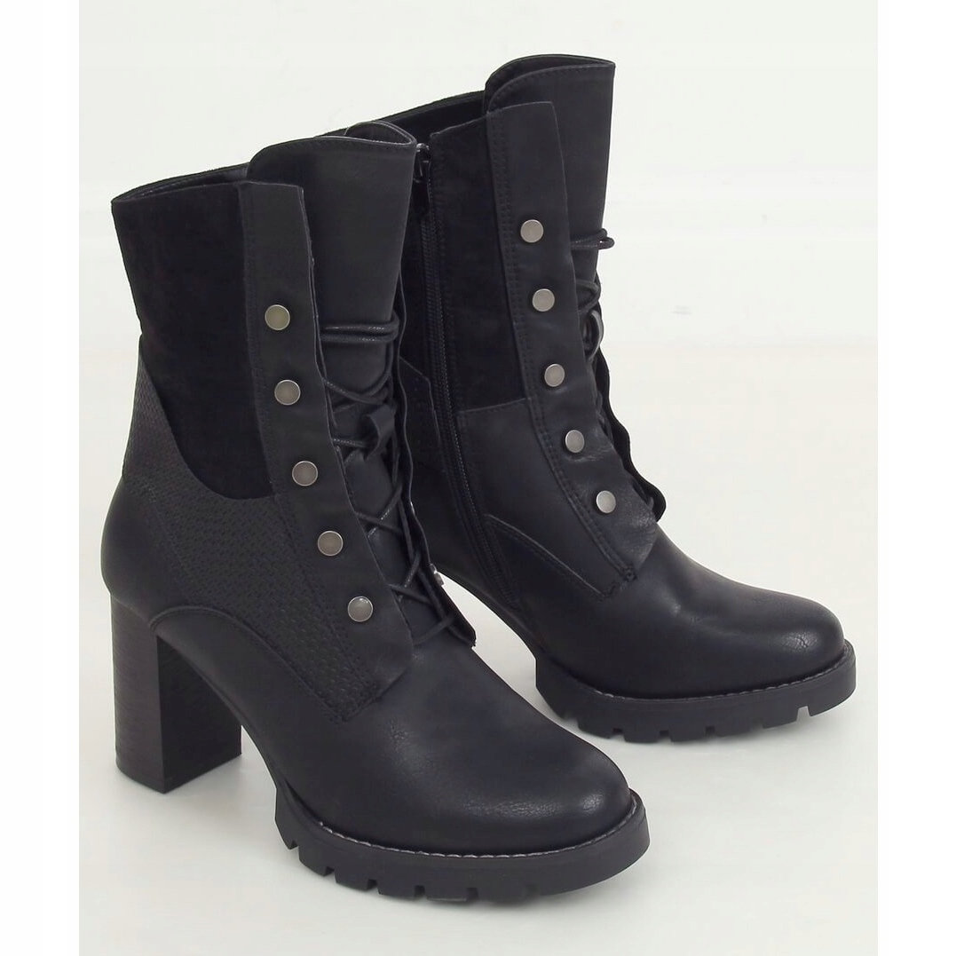 Inna marka Botas negras con cordones de tacón alto 1213GA Black negro