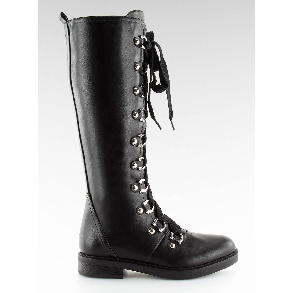 Botas de mujer - botas de tacón plano. Las botas negras son una necesidad en el guardarropa de invierno de todas las mujeres. ¡Encajan virtualmente todo! Más aún porque este modelo tiene un deslizador en el lateral, lo que garantiza una colocación cómoda. Un detalle atractivo es el cordón decorativo con cordones anchos. ¡Alcanza eso ahora! Están confeccionadas en piel ecológica, forrada con un delicado pelaje.