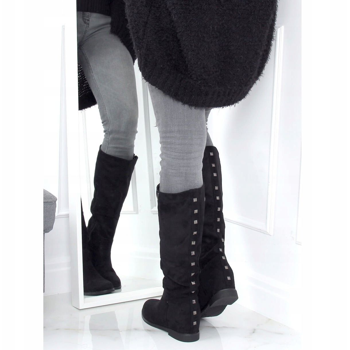 Descubra las exclusivas botas negras con cuña oculta ST-11P Black, que se distinguen no solo por su diseño moderno, sino también por su extraordinaria comodidad. Las cuñas de 6 cm de altura aportan elegancia y alargan ópticamente las piernas, y la pala decorada con pedrería y un sutil detalle en forma de "V" llama la atención y aporta carácter al calzado.