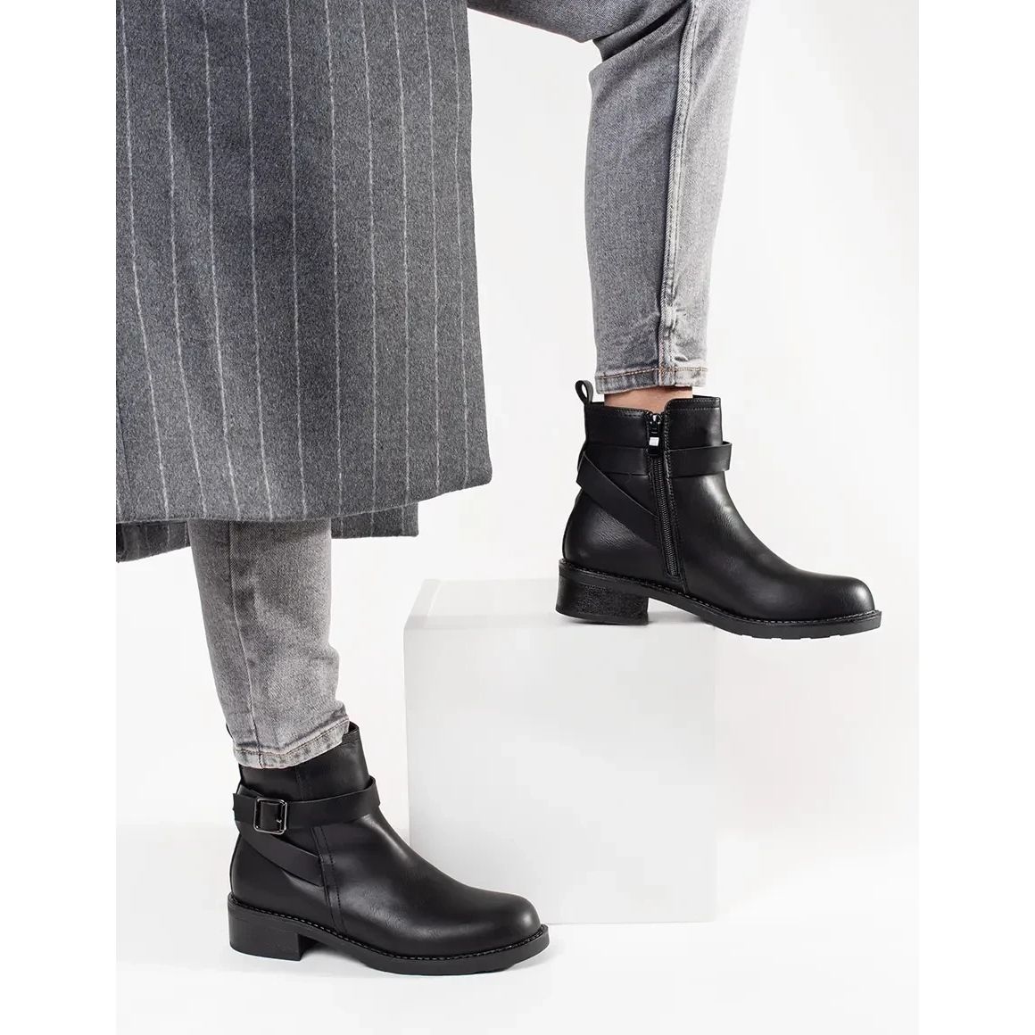 Detalles: Botas negras de baja tina decoradas con tiras negro