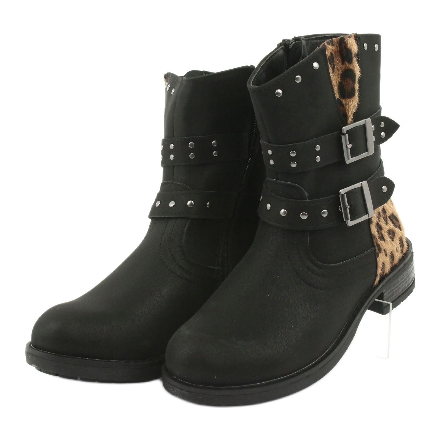 Las botas negras de leopardo con azabache de American Club son una opción perfecta para los pequeños amantes de la moda. Confeccionados en piel ecológica de alta calidad, estos elegantes botines combinan estilo con funcionalidad. Llama la atención su pala, de aproximadamente 16,5 cm de largo, con un sutil estampado de leopardo, y el tacón de 3 cm añade comodidad en las actividades cotidianas.