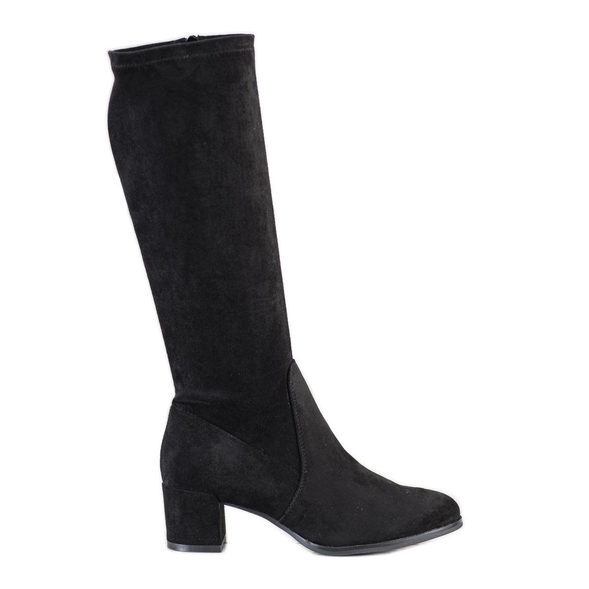 Las botas tienen un corte clásico, complementado con una puntera redonda y un tacón estable de 5 cm de altura garantiza la comodidad de uso. El ancho superior de 34 cm y la altura de la rodilla les aportan carácter y los hacen combinar perfectamente con varios estilos. Un talón rígido incorporado y una suela de plástico sólida y lisa garantizan no solo estilo, sino también seguridad al caminar.