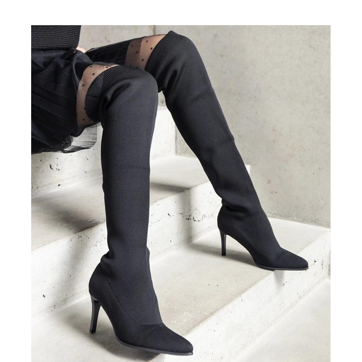 Descubra elegancia y comodidad con botas negras deslizadas en un tacón alto con una parte superior elástica, creada para mujeres modernas que valoran el estilo y la funcionalidad. Estos mosqueteros musculosos, que alcanzan la rodilla, ofrecen no solo un diseño de moda, sino también calentamiento cálido, perfecto para los días de otoño e invierno.