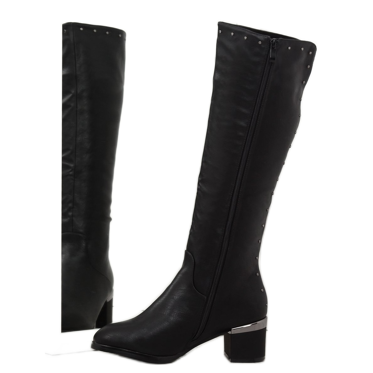 Inna marka Botas negras de tacón cómodo SG-199 Negro