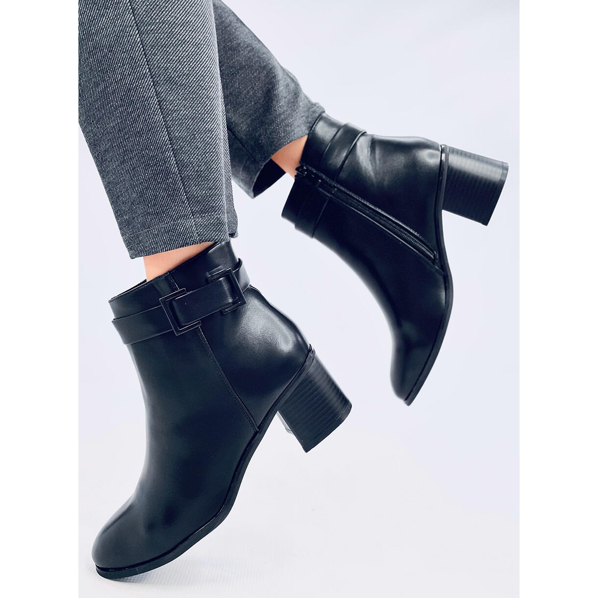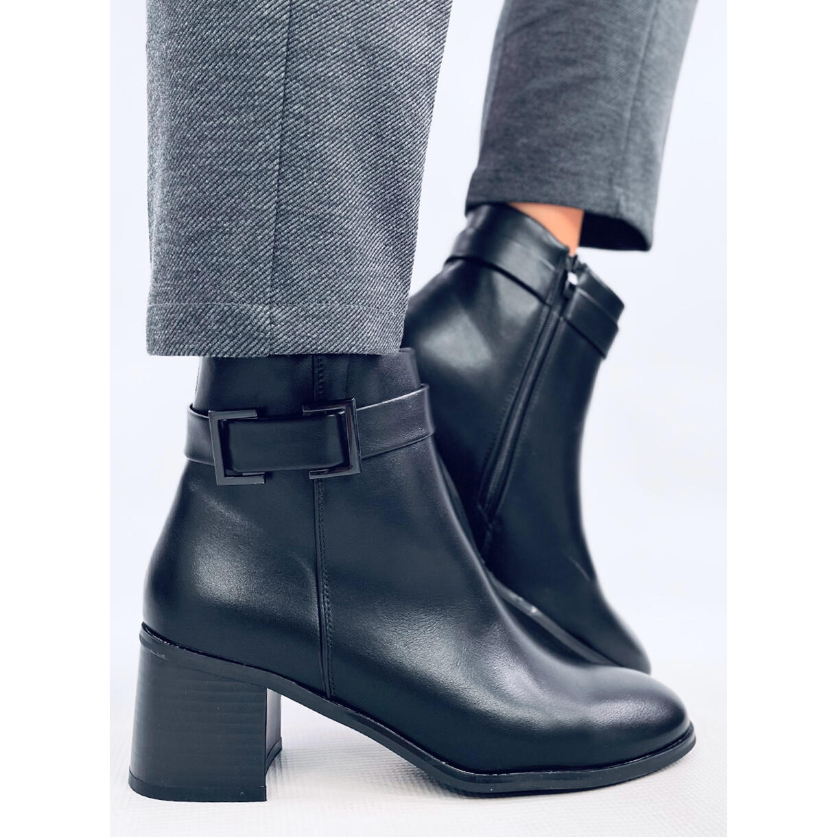 El color negro componerá fácilmente con varias estilizaciones, desde todos los días hasta más formales. Un talón alto y ancho con una altura de 6 cm asegura la estabilidad y la conveniencia, lo que le permite usarlos todo el día sin una sensación de fatiga. Una ventaja adicional es una cremallera práctica colocada en el costado, lo que hace que sea más fácil ponerse y quitar los zapatos.