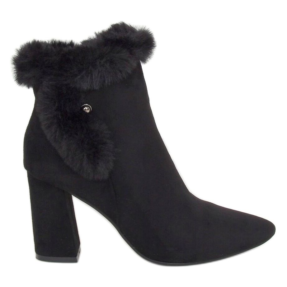 Descubre la elegancia y la comodidad con los botines de tacón de ante J19-83 Negro. Estas singulares botas de mujer se distinguen por su clásico color negro, que combina perfectamente con cualquier estilismo, aportando elegancia y sofisticación. Su elegante diseño con puntera almendrada y tacón de 8,5 cm de altura en forma de bloque proporcionan no sólo un aspecto elegante, sino también comodidad de uso.