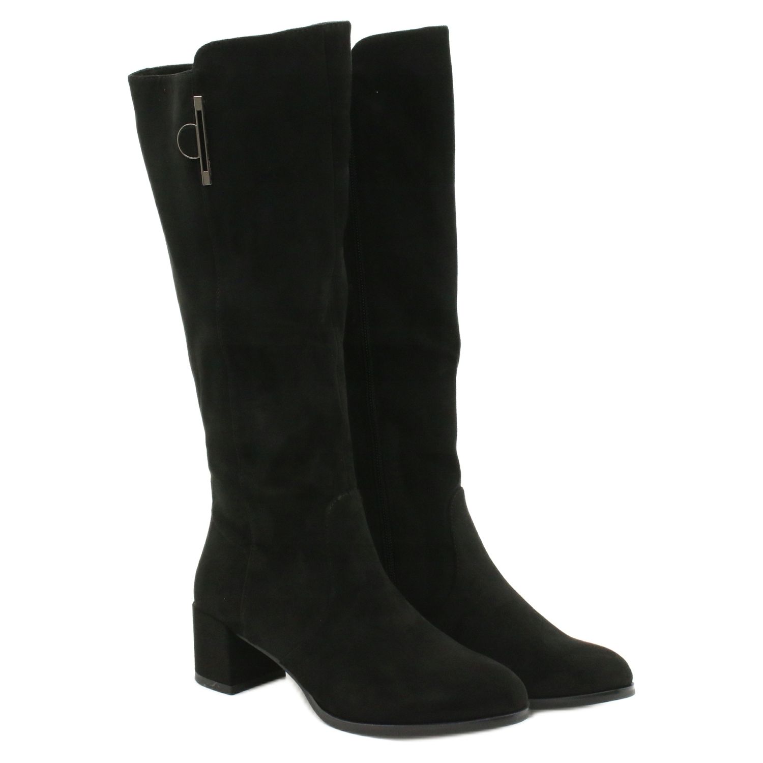 Descubre la elegancia y el estilo con las botas negras Sergio Leone KZ277. Esta es una elección perfecta para toda mujer a la moda que aprecia la combinación de estilo clásico y moderno. Las botas están hechas de gamuza ecológica de alta calidad, lo que garantiza no solo una apariencia atractiva, sino también durabilidad y comodidad de uso.