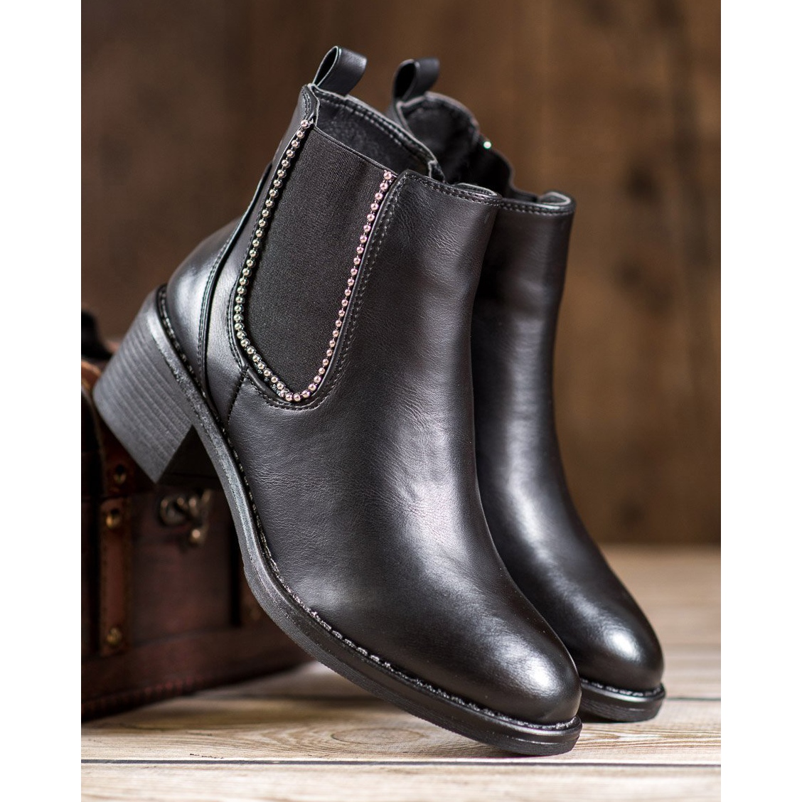 Descubre comodidad y elegancia en uno eligiendo los botines Small Swan en color negro universal. Estos elegantes zapatos, fabricados con piel ecológica de alta calidad, son un complemento perfecto para cualquier armario de otoño-invierno. Gracias al tacón de 5,5 cm que garantiza la estabilidad, podrás disfrutar de la comodidad incluso durante largos paseos.