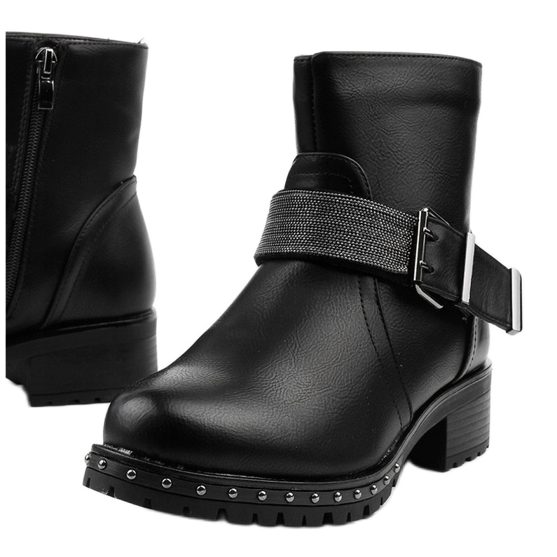 Su original hebilla decorada con lentejuelas y su suela con remaches metálicos les dan un carácter único y hacen de estas botas un verdadero atractivo. En el lateral de la parte superior hay una práctica cremallera que facilita ponerse y quitarse los zapatos.