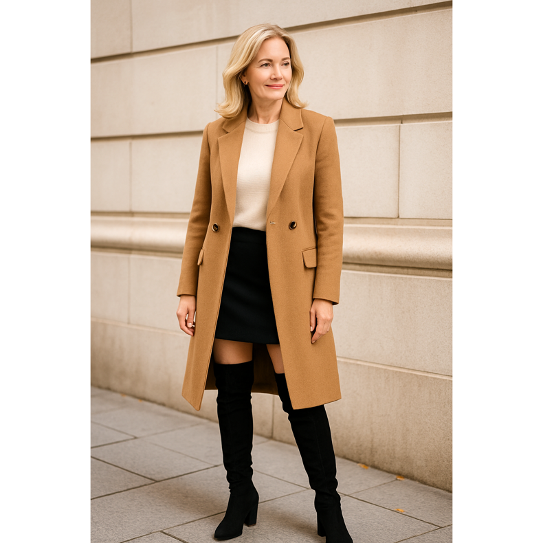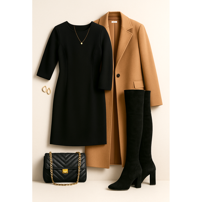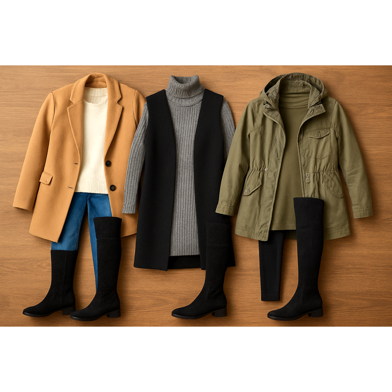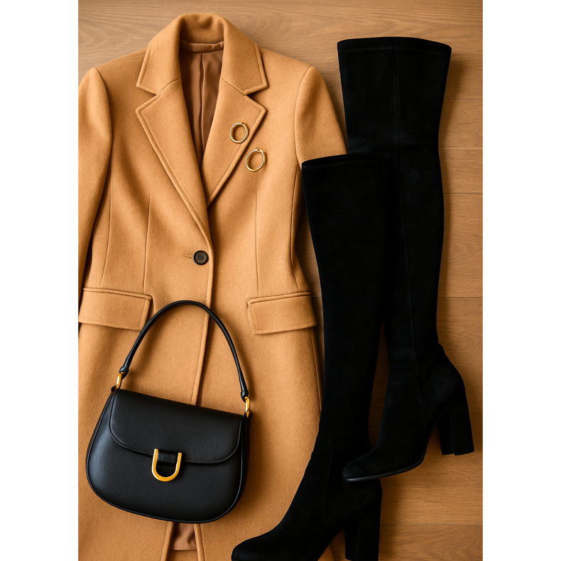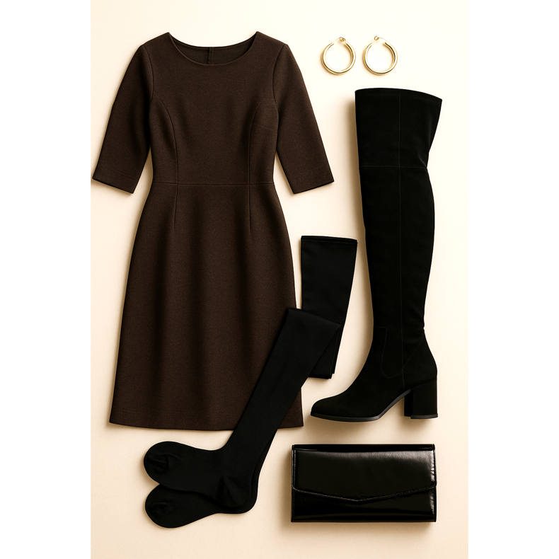 Mantener las proporciones correctas es la base de una estilización exitosa con botas de sobrepasos en sus cuarenta años. ** Principio 1/3 a 2/3 **: La parte superior de la estilización debe ser 2/3, y la parte visible de las piernas 1/3. Esto proporciona una figura armoniosa. ** Longitud de la cubierta **: Siempre elija ropa exterior que llegue al menos a la mitad del muslo. Las chaquetas cortas o Bolero perturban las proporciones. ** Piel visible **: Limite la cantidad de piel visible. Debe haber un máximo de una ruptura de 5-7 cm entre el final de la ropa y el comienzo de las botas. También puede cubrir completamente este espacio con una falda o vestido más largo. ** Balance de arriba hacia abajo **: Si las botas están instaladas, la parte superior puede ser más suelta. Si elige botas más anchas, la parte superior debe coincidir más.