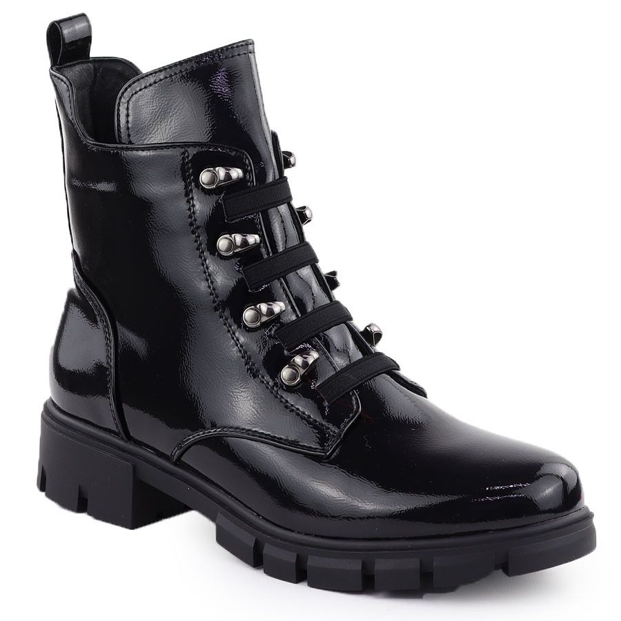 Conozca las botas aislados aislados para mujeres M. Daszyński MR23123 - ¡Una combinación perfecta de estilo y comodidad! Estas botas extremadamente elegantes hechas de cuero ecológico de alta calidad son un complemento perfecto para cada estilo de otoño o invierno. Su color negro universal significa que coinciden con muchos atuendos, y el acabado barnizado les da una moda.