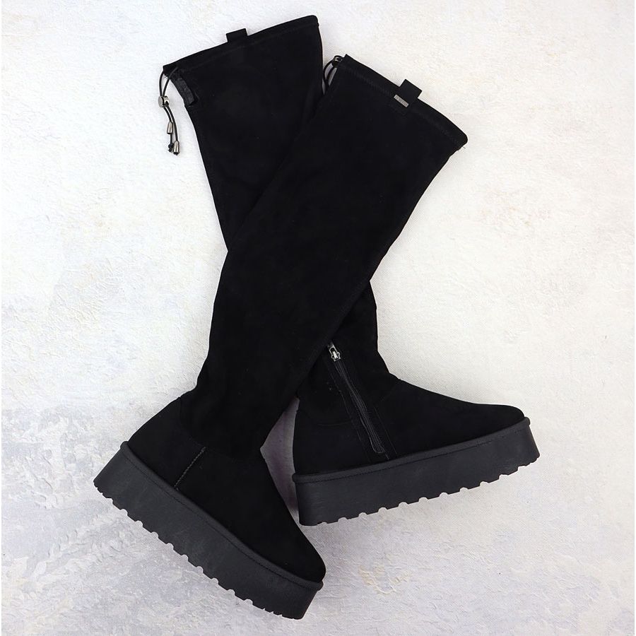 Las botas para mujeres en la plataforma de ante Black Big Star SS274264 es una gran opción para cada mujer que quiere combinar la comodidad con las últimas tendencias de la moda. Hecho de cuero ecológico de gamuza de alta calidad, se caracterizan por un elegante color negro, ideal para cualquier estilo.