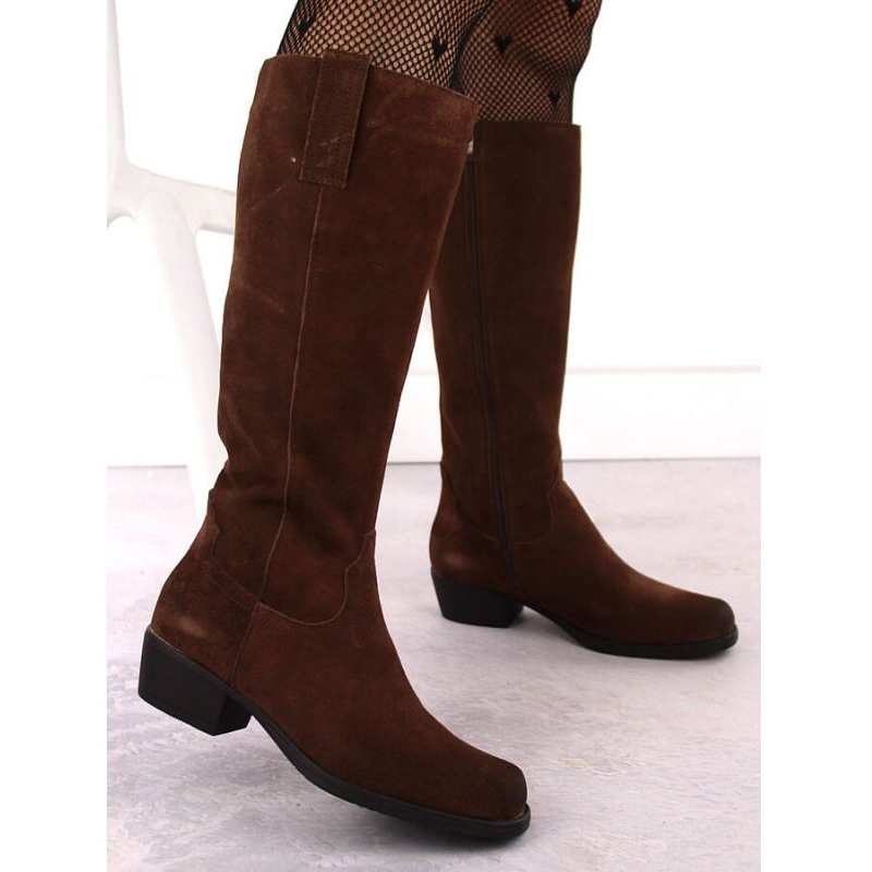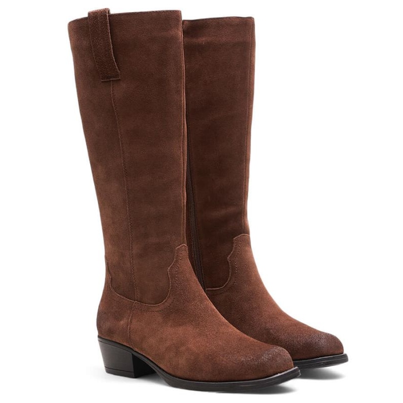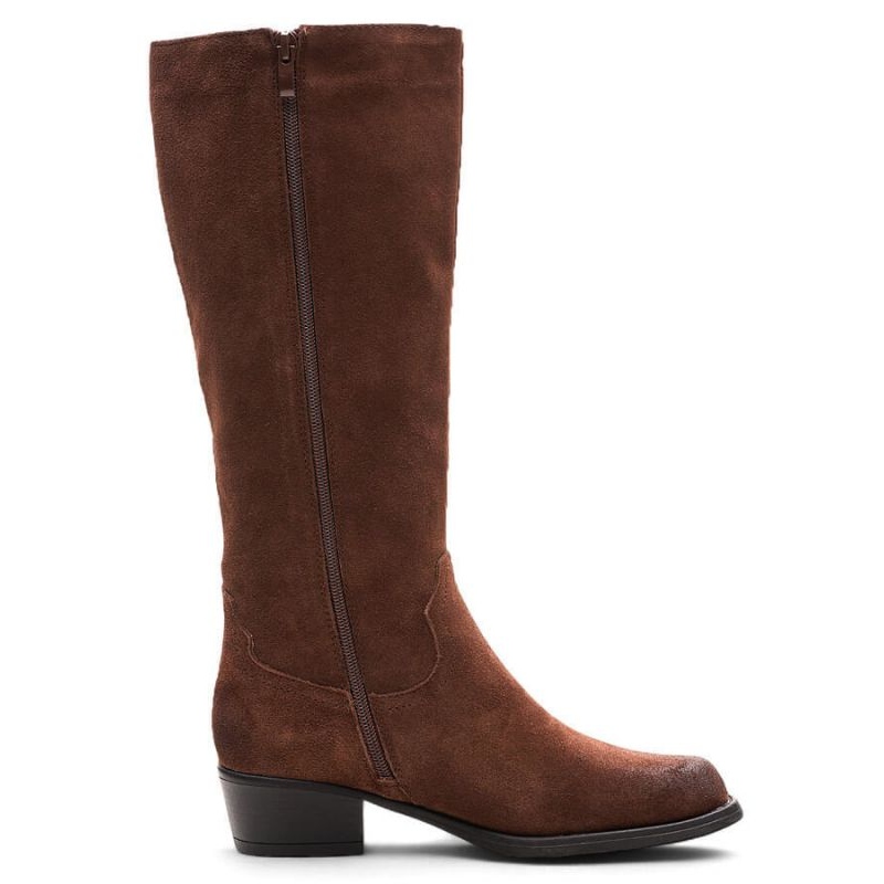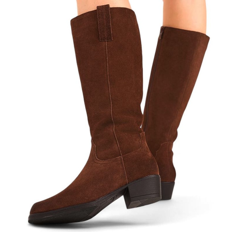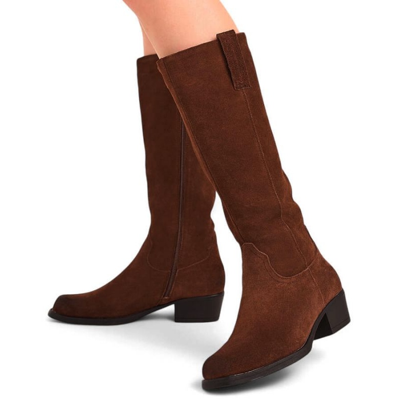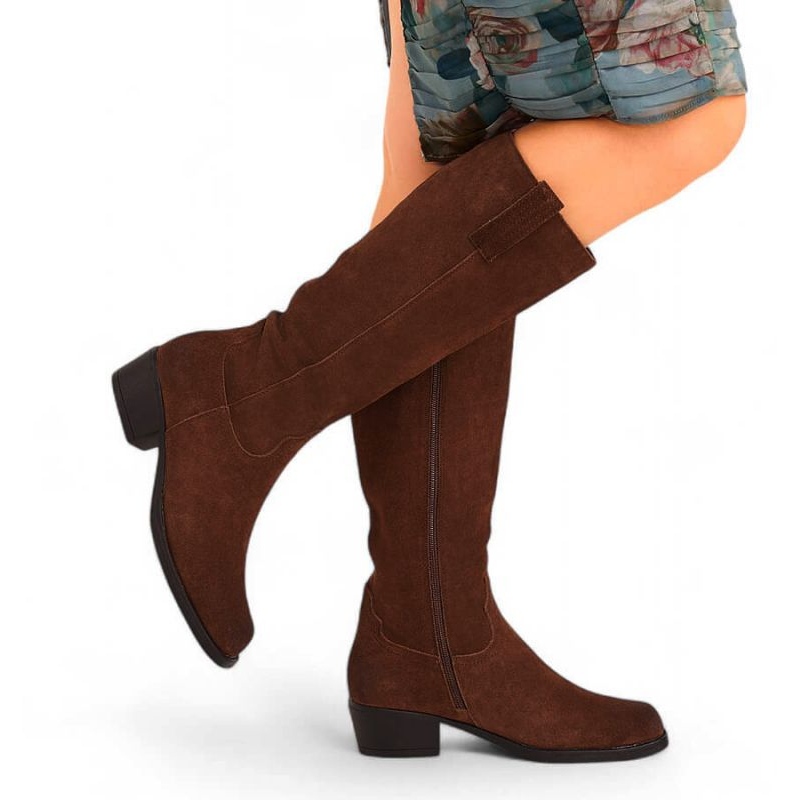 Hecho de cuero de gamuza ecológico de alta calidad, estas botas de moda no solo son elegantes, sino que también cuidan el medio ambiente. Un dedo redondo y un talón estable en forma de un bloque, 5 cm de altura, garantizar la comodidad al caminar y al mismo tiempo agregan elegancia sutil.
