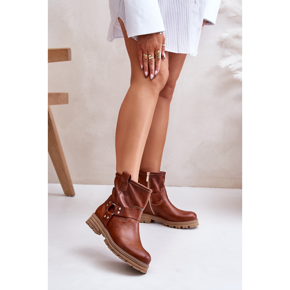 Su diseño minimalista con dedos redondeados da sutileza, y un tacón cómodo y plano con una altura de 4 cm asegura la estabilidad y la comodidad de usar todo el día. Las botas tienen un cierre práctico de cremallera, lo que hace que sea más fácil poner y despegar. Además, la parte superior está decorada con una combinación espectacular de correas con diamantes de imitación, lo que enfatiza su carácter único y los convierte en un complemento ideal para las estilizaciones de moda.
