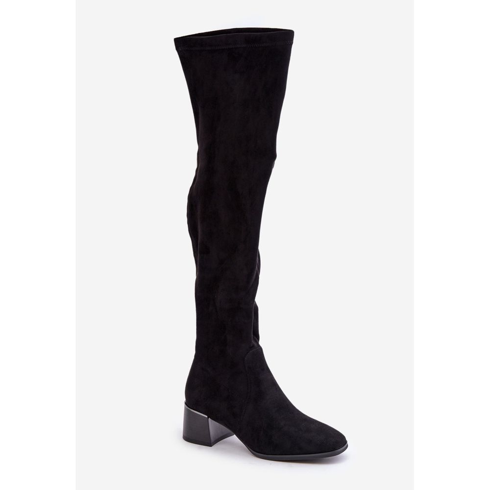 Detalles: Botas por encima de la rodilla con tacón cuadrado confeccionadas en ante ecológico, Negro Galadi
