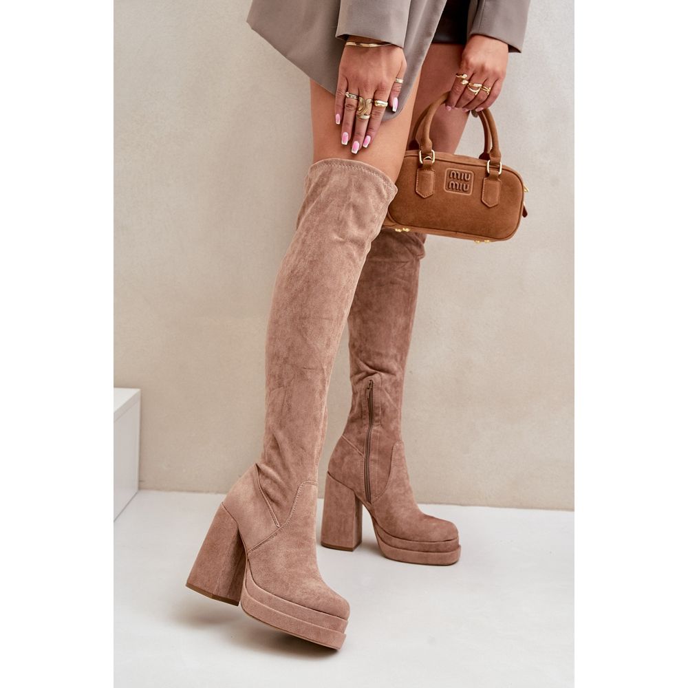Detalles: Botas por encima de la rodilla Nadelian beige con tacón alto y plataforma