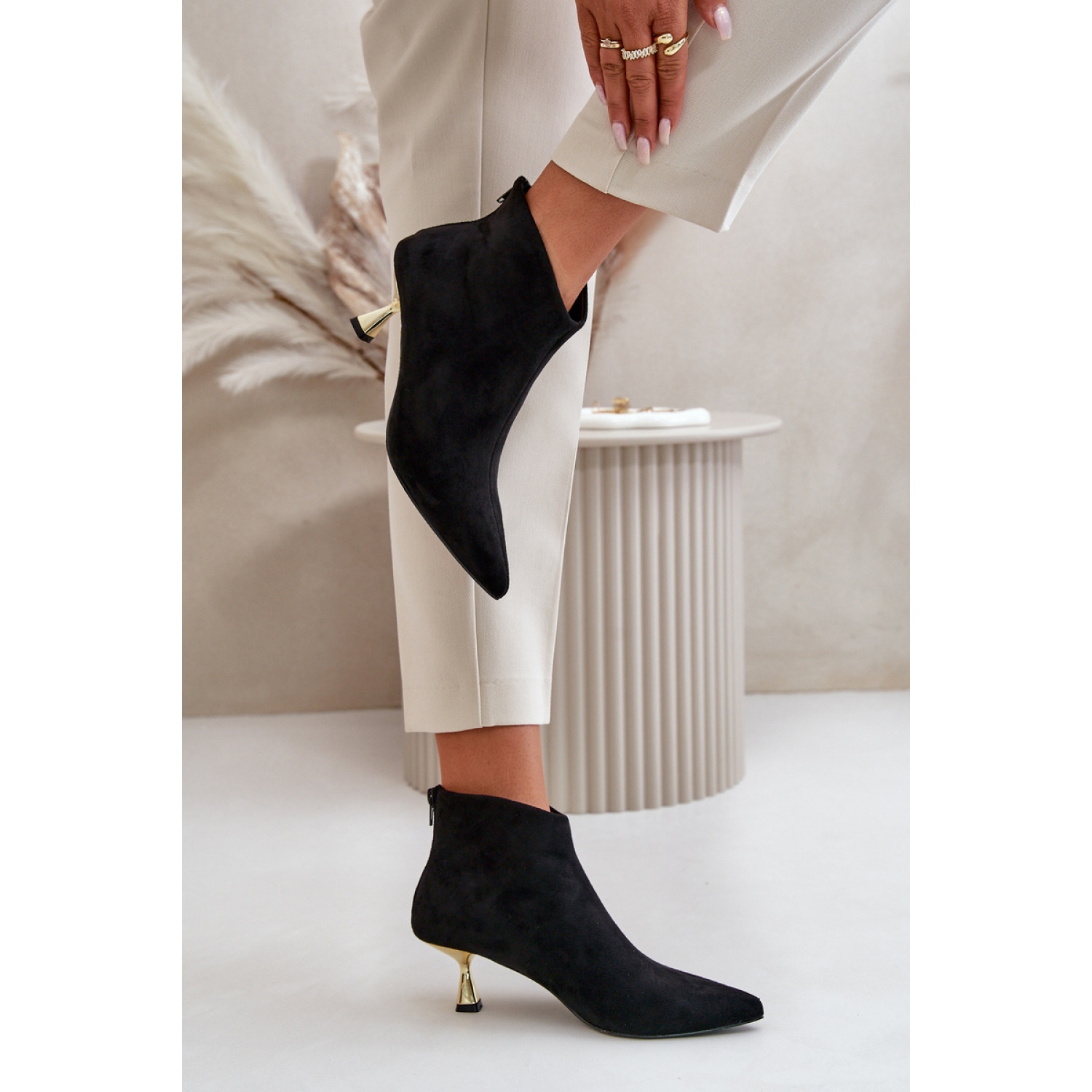 La conveniencia y la facilidad de poner una cremallera colocada en la parte posterior, lo que permite la extracción rápida y cómoda y poner calzado. La altura de la parte superior de 11 cm hace que las botas enfaticen bien el tobillo, y su diseño minimalista sin diseños las hace universales y fáciles de estilizar.