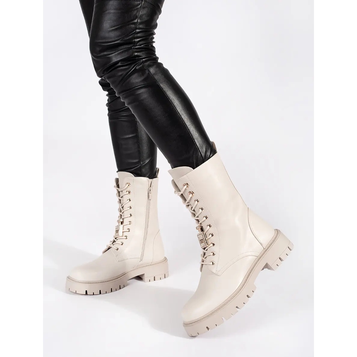 - Modelo: Botas trabajadoras de mujer beige claro con pasadores