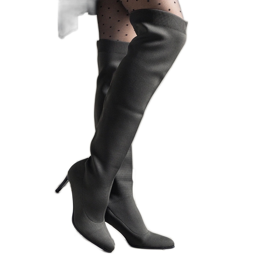 Las botas deslizantes verdes en un tacón alto con una parte superior elástica de Atari es un éxito absoluto de esta temporada, que debe encontrarse en el armario de cada mujer. Su elegante y puntiaguda nariz y una forma de moda y de moda los hacen perfectamente encajados en las últimas tendencias. La altura sobre la rodilla (59 cm) y el tacón de altura de 8,5 cm enfatizan la figura, agregando su esbeltez.