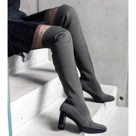 Slip verde en botas en un poste con una parte superior de flamme flexible es una gran opción para cada mujer que busca un calzado elegante y cómodo para los días de invierno. Hecho de material de alta calidad, estas botas no solo se ven elegantes, sino que también garantizan el calor gracias al inserto aislado.