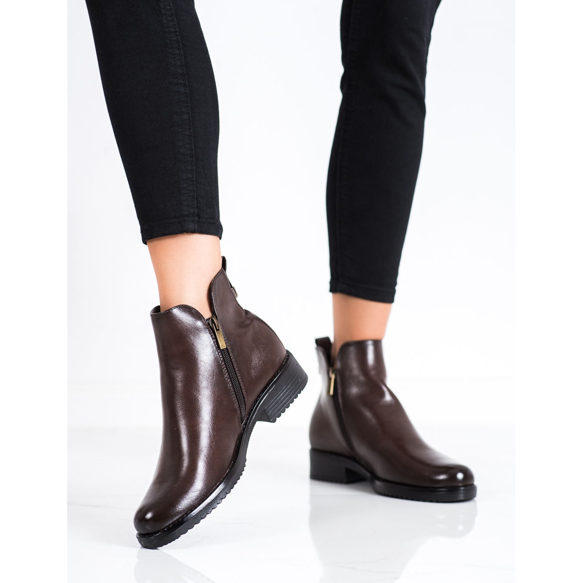 Descubre la elegancia y comodidad que te ofrecen los clásicos botines VINCEZA en un bonito color marrón. Estos elegantes zapatos, diseñados para mujeres, encajan perfectamente en el estilo casual, perfectos para el uso diario. Fabricadas en piel ecológica de alta calidad, las botas no sólo lucen elegantes, sino que también cuidan tus pies, proporcionándoles la calidez adecuada gracias al interior de fieltro.