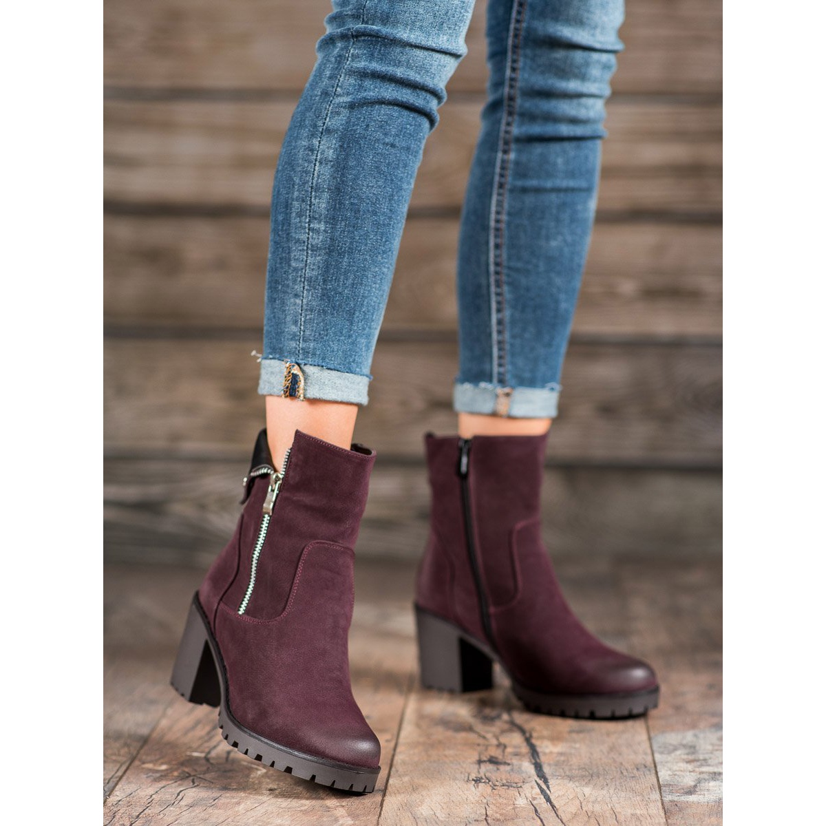 Descubre la elegancia y la comodidad con los últimos botines VINCEZA en color burdeos, que complementarán a la perfección cualquier look de otoño e invierno. Estos zapatos únicos, confeccionados en piel serraje ecológica, llaman la atención por su color burdeos intenso. El cierre de cremallera decorativa añade un carácter elegante y la práctica cremallera hace que sean fáciles de poner.