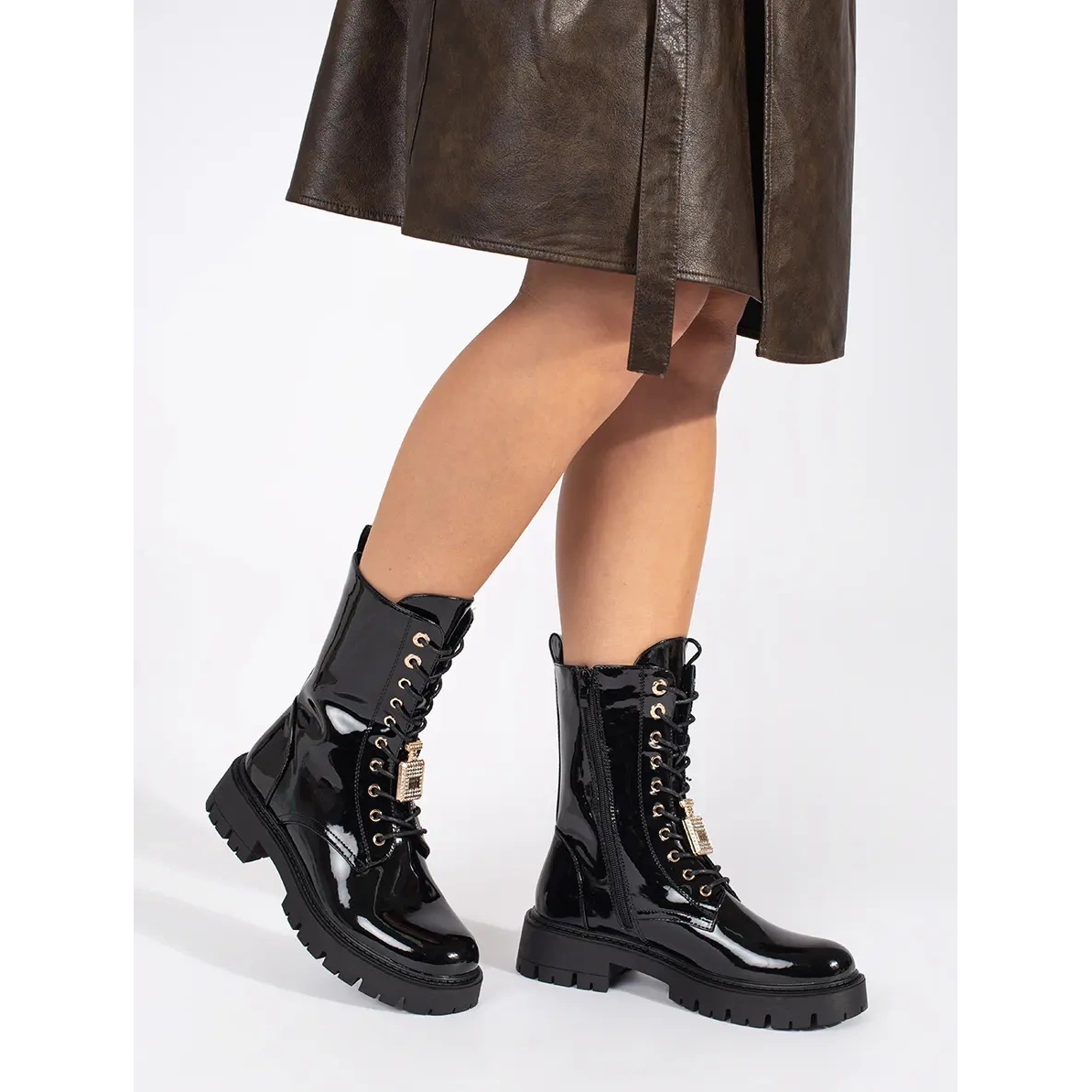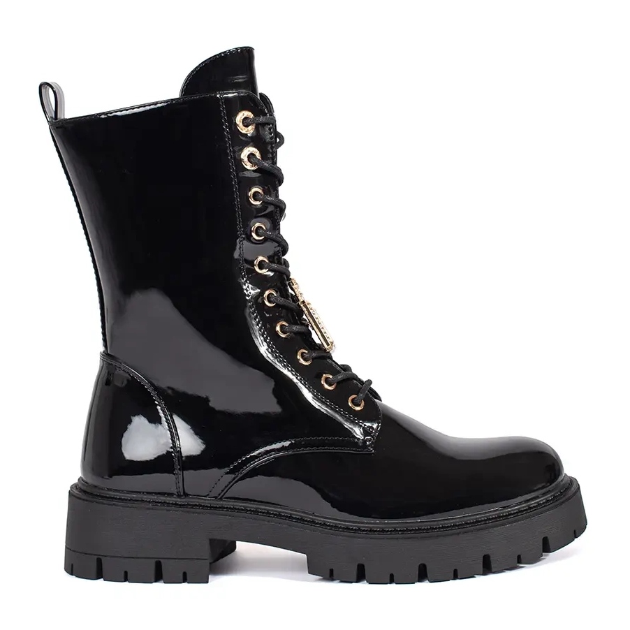 Seastar Seastar Botín obrero charol negro con cordones en la plataforma y pasadores