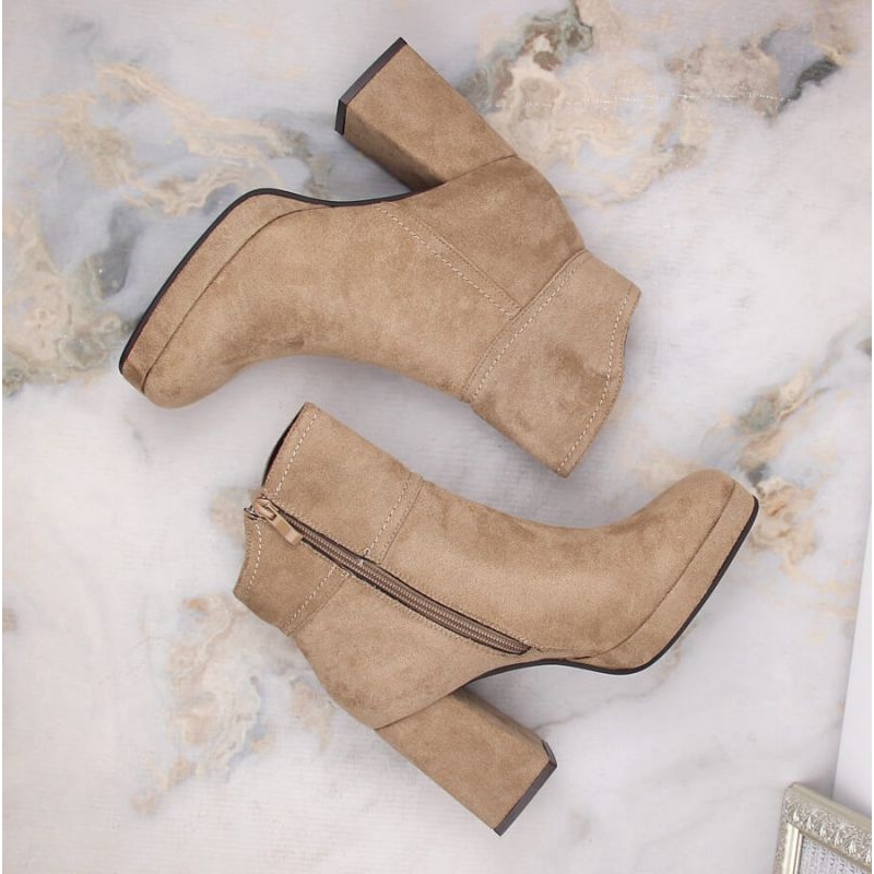 Botines aislantes de ante con tacón alto y plataforma M.Daszyński W SAN24B, beige