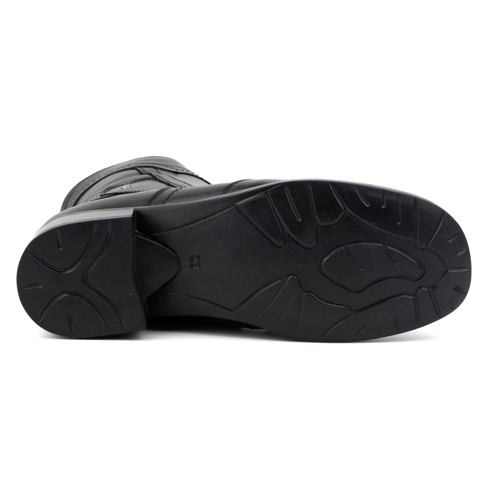 La altura total de las botas es de unos 20 cm, lo que hace que se ajusten perfectamente a la pierna, destacando sus ventajas. El interior de las botas está forrado con piel de oveja, lo que proporciona un excelente aislamiento en los días más fríos. Gracias al uso de una plataforma de 3 cm de altura y al tipo de tacón, los botines no sólo son elegantes, sino también cómodos de llevar.