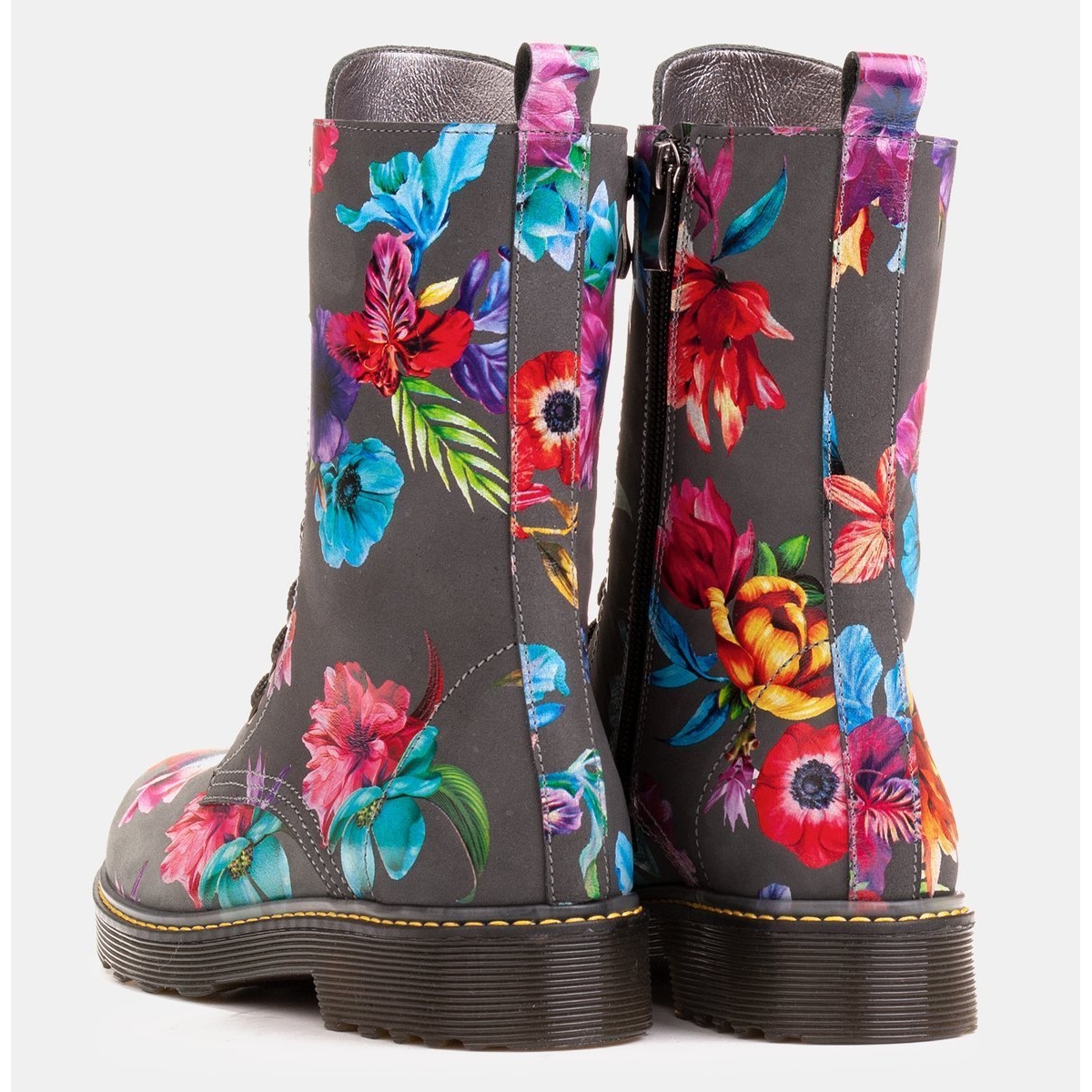 Marco Shoes Marco Shoes Botines altos, botines de piel nobuck con estampado floral gris