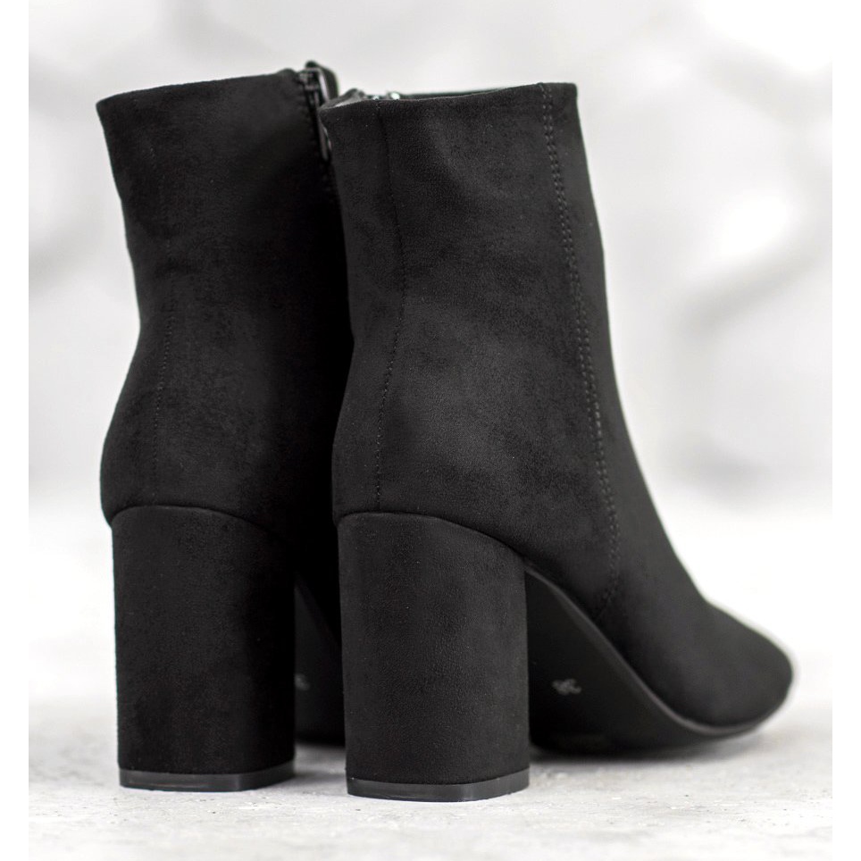 Las botas se distinguen por su alta calidad de fabricación, con una parte superior exterior de ante ecológico, que les confiere un aspecto único y durabilidad. Un suave talón incorporado y un poste estable de 8,5 cm de altura garantizan un uso cómodo, incluso durante todo el día. El interior de los zapatos está aislado, lo que los convierte en una opción ideal para los días más fríos de otoño e invierno.