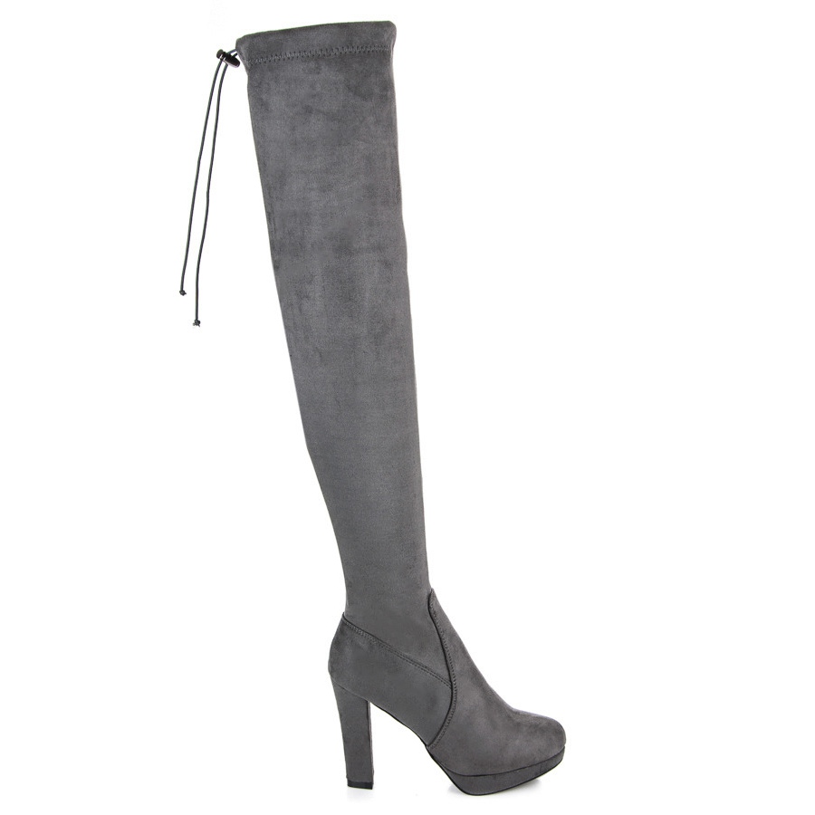 Descubre la elegancia y el estilo con los mosqueteros Vices en tono gris oscuro. Estas botas únicas confeccionadas en piel serraje ecológica son la elección perfecta que aportará elegancia a cualquier estilismo. La parte superior alta, que llega por encima de la rodilla, realza las piernas y las adelgaza, y el corte clásico hace que estos zapatos se adapten tanto a ropa de diario como de noche.