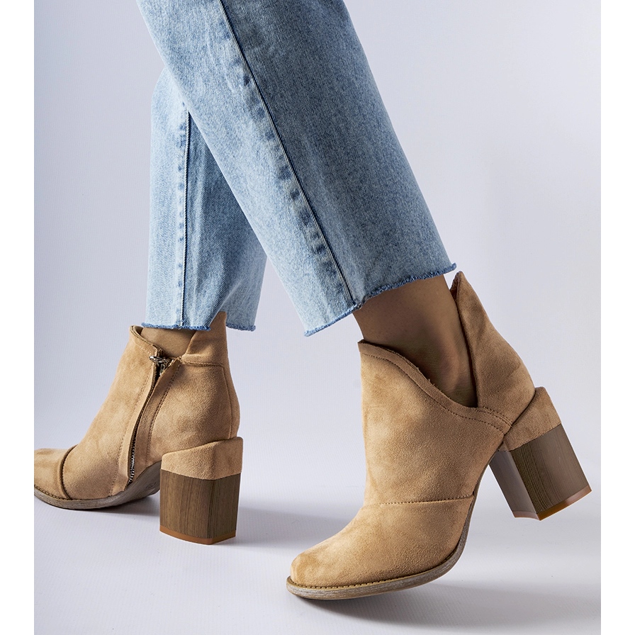 Los botines beige con recorte, Marinella, son unos zapatos de tacón para mujer. Tienen punta redonda y son populares por su diseño moderno. Las botas llegan por encima del tobillo, lo que añade elegancia. También son baratos y asequibles, lo que los hace accesibles a más personas. Los zapatos tienen un carácter moderno y están fabricados en goma, lo que los hace cómodos de llevar. Tienen cremallera, lo que hace que sean fáciles de poner y quitar. Los botines de tacón alto añaden confianza en sí misma al estilo de una mujer.